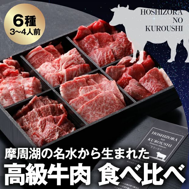 「星空の黒牛6種食べ比べセット」は、赤身と脂のバランスが絶妙。