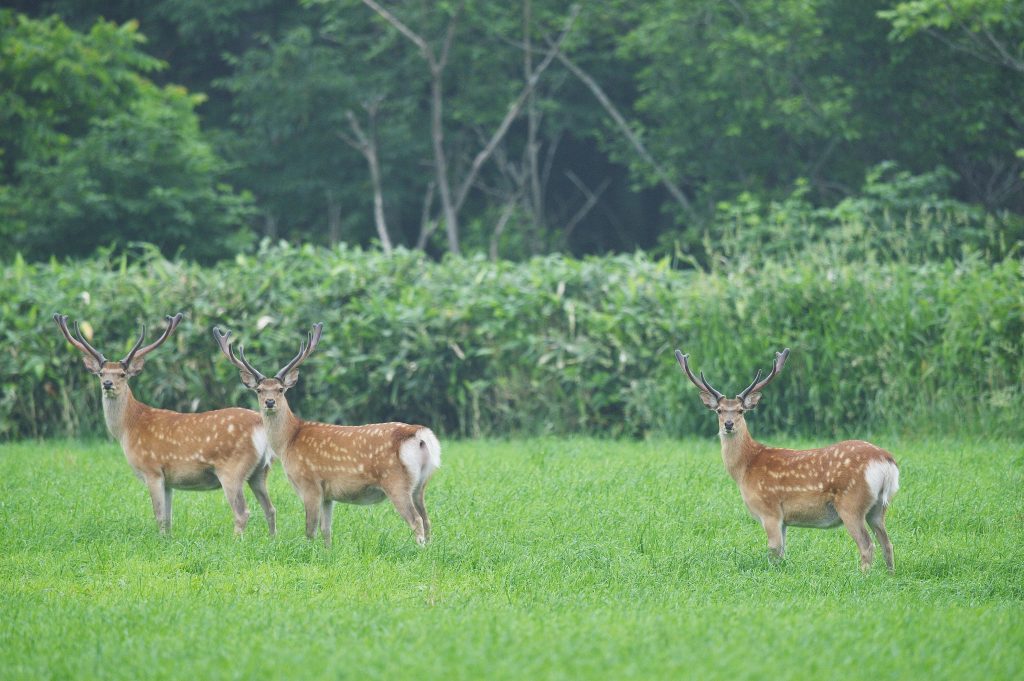 北海道は森林と草原が豊富で、エゾシカや鴨などの野生動物がストレスの少ない環境でのびのびと生息しています。