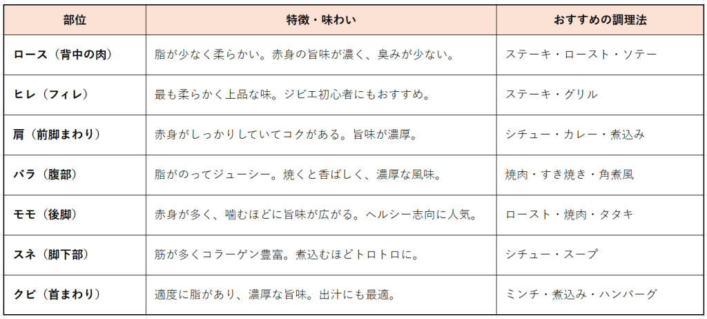 北海道のエゾシカ肉は、部位によって味わいも食感も大きく異なります。