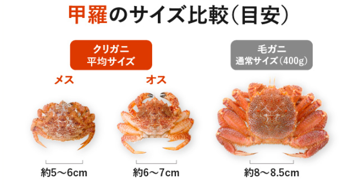 ・サイズ:クリガニはやや小ぶり