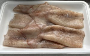 繊細で柔らかな食感。短時間の調理でも柔らかく仕上がります。薄くて細長い体を持ち、軽い食感を楽しめます。スルメイカと比べて味わいが控えめで、上品な風味があります。