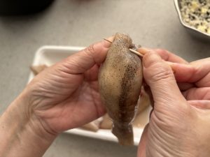 イカのサイズに合わせて中に詰めるもち米などの量や調味料は調整してください。今回はイカが小ぶりだったこともあり、少し濃いめの味付けになりましたが、甘めの味付けがお好きな方は砂糖を増やすなどして、自分好みの味付けを見つけてください。