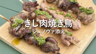 【野性味×香り】きじ肉の焼き鳥 行者にんにくジェノヴァ添え:山の恵みを味わう一串