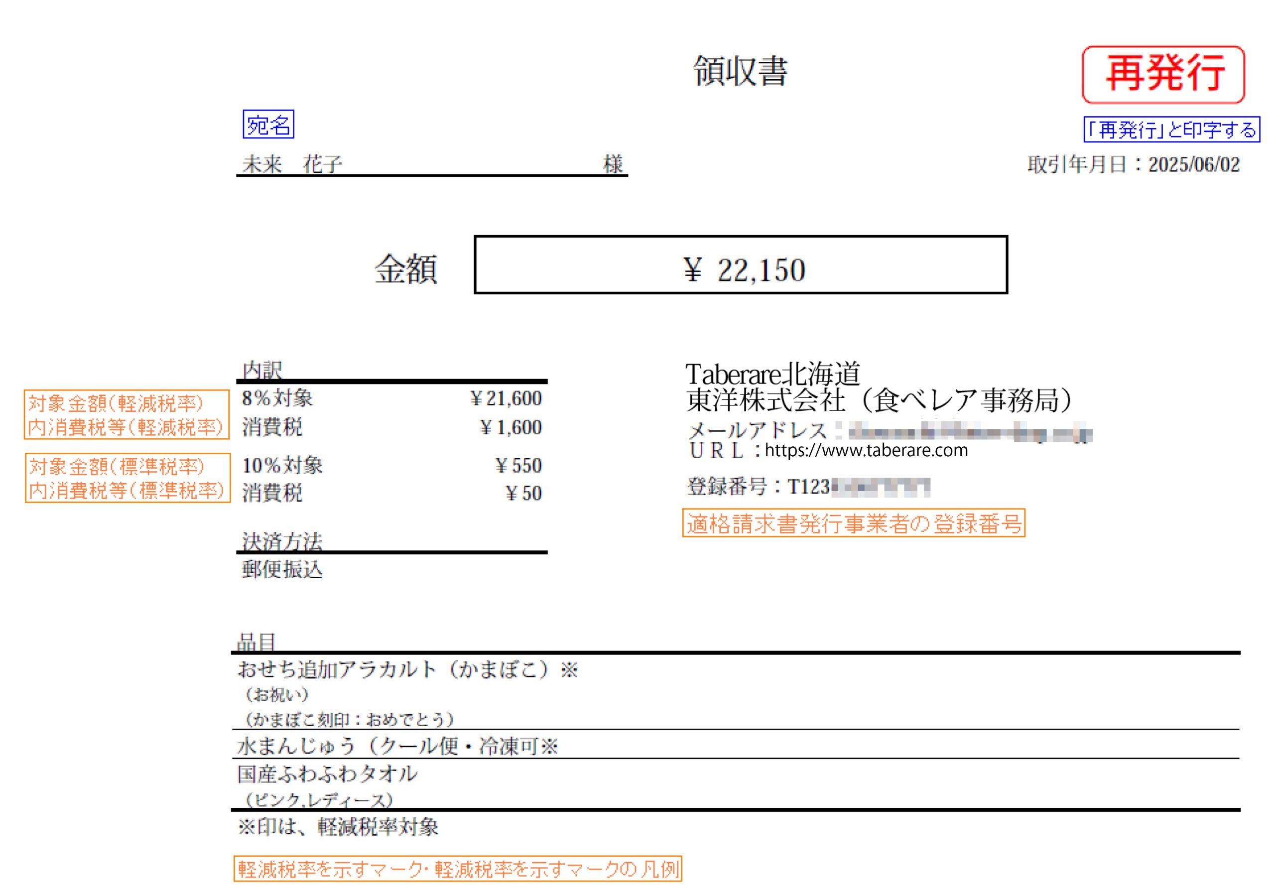 - 本領収書は適格請求書等保存方式(インボイス制度)対応です。