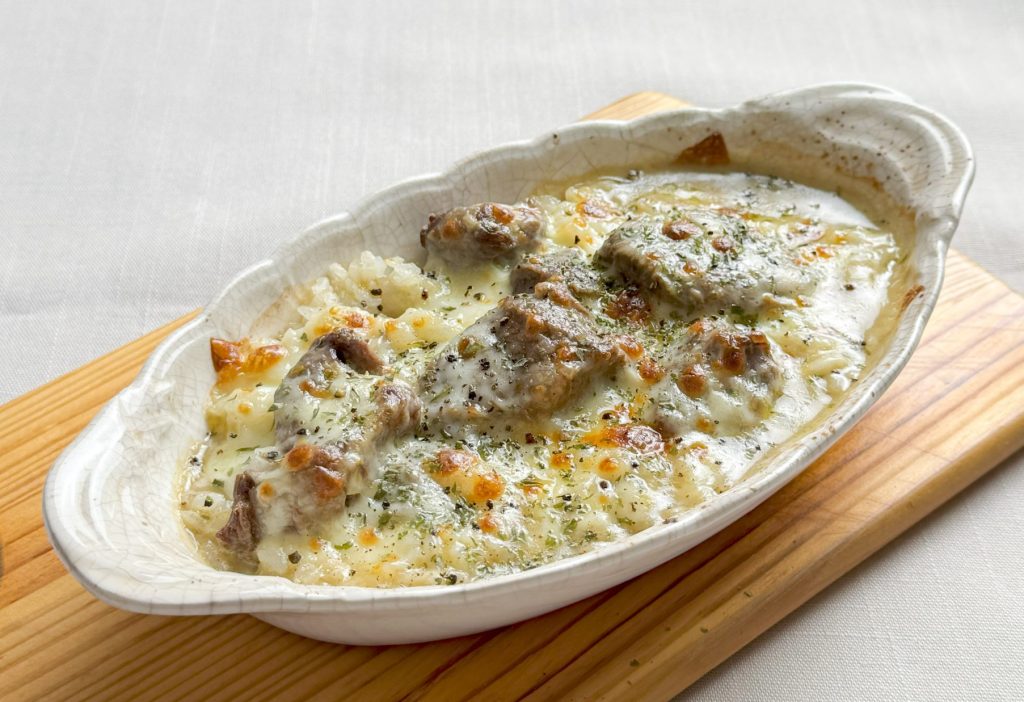 エゾシカ肉の旨みがぎゅっと詰まった「エゾシカ肉のグリーンカレー」を使った簡単ドリアレシピです。ごはんにかけて焼くだけなのに本格的。忙しい日でもパパっと作れる時短メニューとしてもおすすめです。
