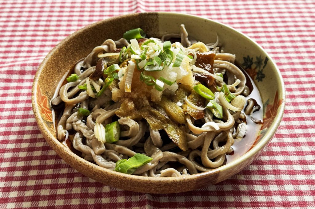 北海道の秋を代表する落葉きのこを合わせた、贅沢なぶっかけそば。