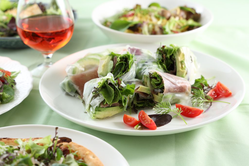 たっぷりのベビーリーフと濃厚なアボカドを包んだ、彩り豊かな生春巻き。