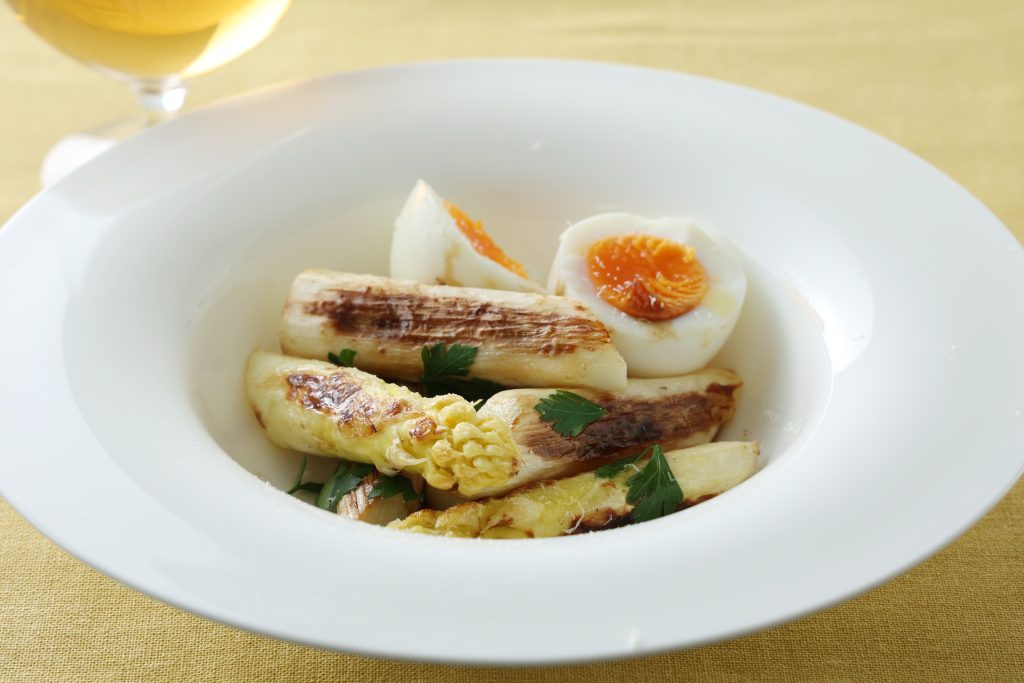 ホワイトアスパラを香ばしく焼き上げた、風味豊かな一皿。