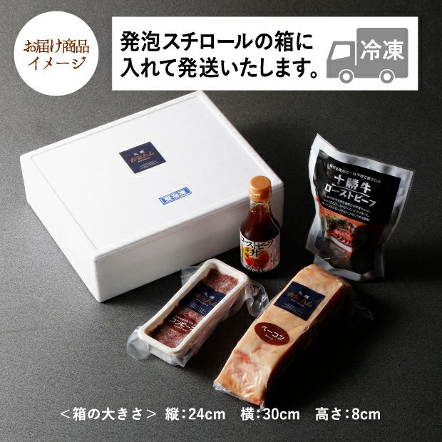 他の画像を見る ローストビーフ丼のたれ付。旨味が凝縮した、肉屋が作った逸品です 大金ハム 3種セレクト詰合せ(ベーコン・ローストビーフ・コンビーフ) [札幌市]大金畜産 ¥ 7,900 税込 お気に入り 送料込み 冷凍