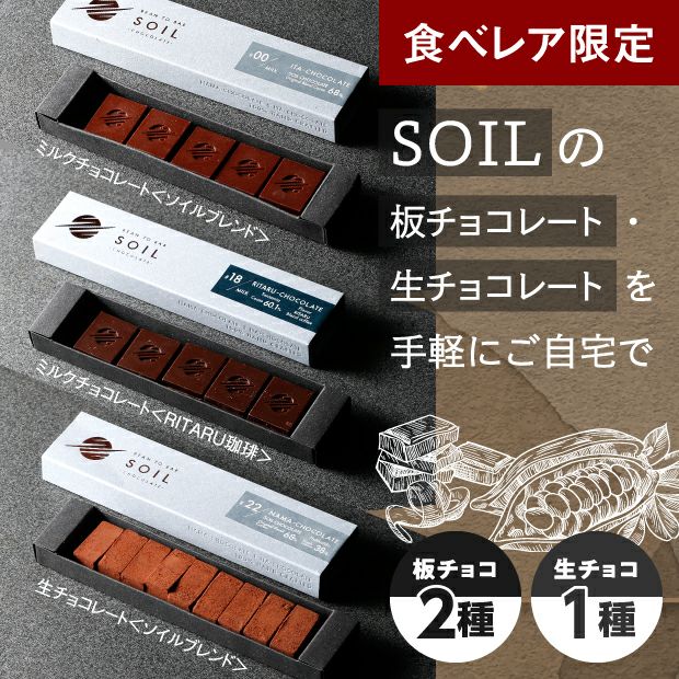 他の画像を見る SOILの板チョコレート・生チョコレートを手軽にご自宅で SOILの2種のミルクチョコレート&生チョコレート [札幌市]ソイルチョコレート(エンクル) ¥ 4,100 税込 お気に入り 送料込み 冷蔵
