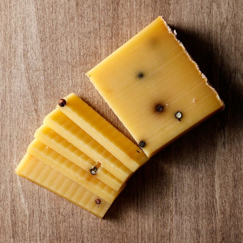 長期熟成「みのり」に黒こしょうを入れて熟成させたスパイシーなチーズ。