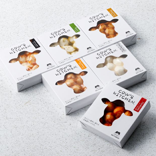ころころチーズに、オリジナルソースで味をつけをしているので、そのまま食べたり料理に使ったりとさまざまな楽しみ方ができます。牛のシルエットがデザインされたパッケージもかわいい。