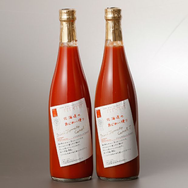 北海道産のミニトマトだけを使用して、つくったトマトジュースです。驚くような甘さと濃厚なのど越しは、ミニトマトならでは。朝採りのミニトマトをそのまま食べているかのような味わいです。原料に使用しているミニトマトは、フルーツのような甘さに定評があり、通常は生食用として青果流通しているものです。