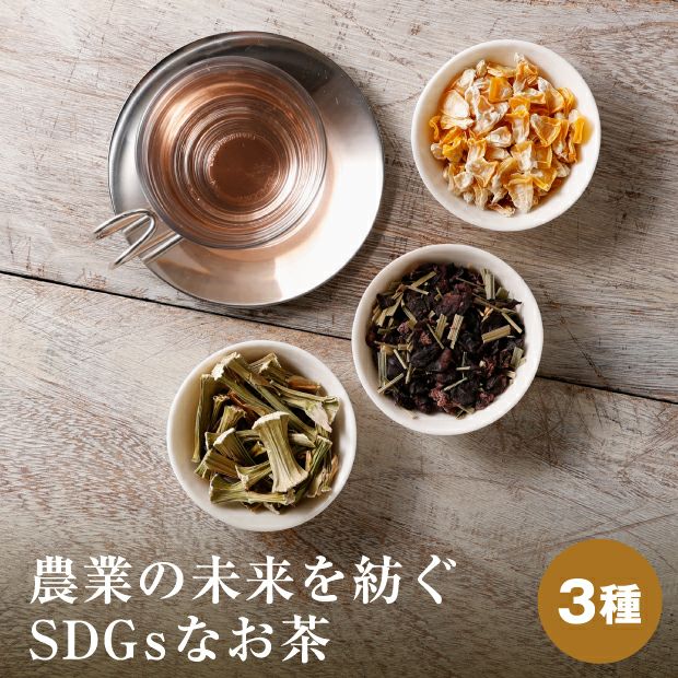 生産者さんのもったいないという気持ちをカタチにした規格外野菜や本来廃棄されるものを使ったSDGsな商品です。“もったいない印”のお茶3種(とうきび茶、アスパラ茶、マールティー)をセットにしました。