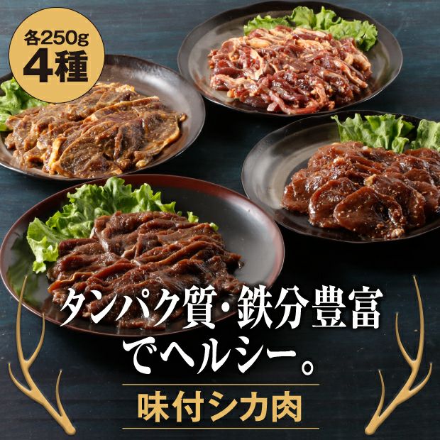 シカ肉はタンパク質と鉄分が豊富で、脂質は牛肉のわずか10分の1。健康的でヘルシーなお肉なので、肉の摂取制限をしている方にも安心して食べていただけます。血液の浄化作用が期待できるリノール酸やDHAなども含むエゾシカ肉を、焼くだけでおいしく食べられる味付き(4種)セットにしました。