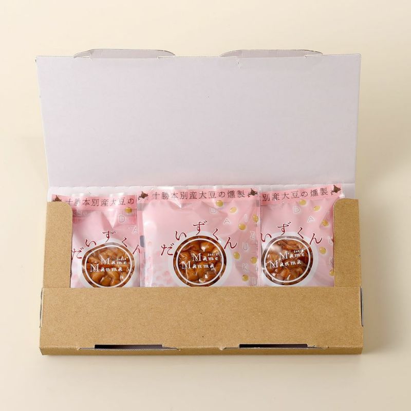 最近は燻製といっても燻液(燻製の味を出す調味料)を染み込ませるだけの食品が多い中、この「だいずくん」は本格的に桜チップで時間をかけてじっくりスモーク。丁寧に燻製することで、別次元の味と食感が生み出されました。