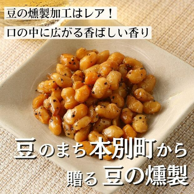 北海道・十勝の本別産大豆を、時間をかけて丁寧に桜チップで燻しました。