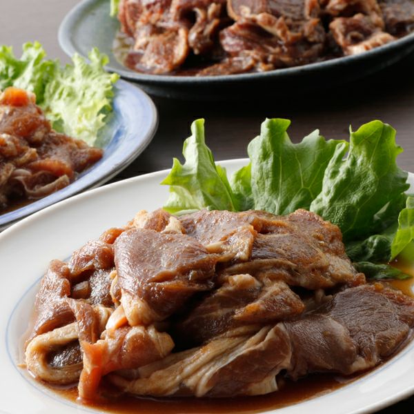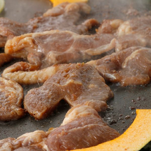 豚の肩ロース肉をジンギスカンでも使われている秘伝のタレで味付けしました。