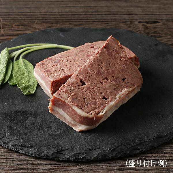 原材料名鹿肉(北海道産)、豚肉、合鴨レバー、鶏レバー、ベーコン、卵、牛乳、バゲット、玉葱、クリーム、食塩、洋酒、香辛料、ゼラチン、トレハロース、にんにく、(一部に小麦・卵・乳成分を含む)/酸化防止剤(V.C)、発色剤(亜硝酸Na) アレルギー物質小麦・卵・乳