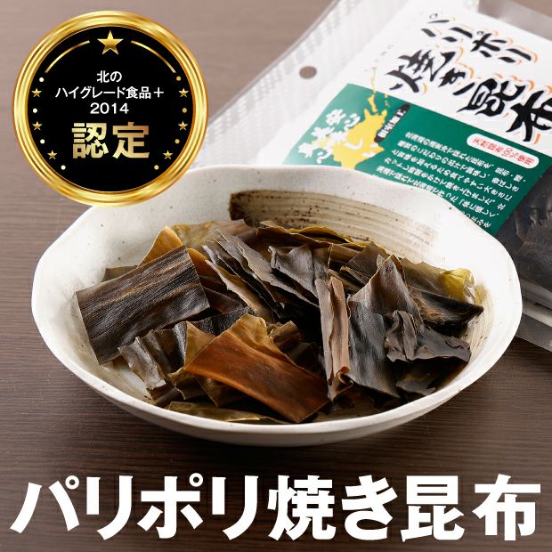 道東産の天然昆布を昆布、鰹、椎茸のだしで甘めに味付け。焼きいれでパリッと食感と旨みをプラス。