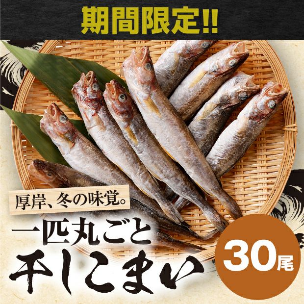 他の画像を見る 厚岸の冬の味覚。ホクホクの身は、お腹もまるごとおいしい 【期間限定】厚岸産 天日干し丸干しこまい 30尾 [厚岸町]カクイチ馬場商店 ¥ 4,280 税込 お気に入り 送料込み 冷凍 在庫切れ