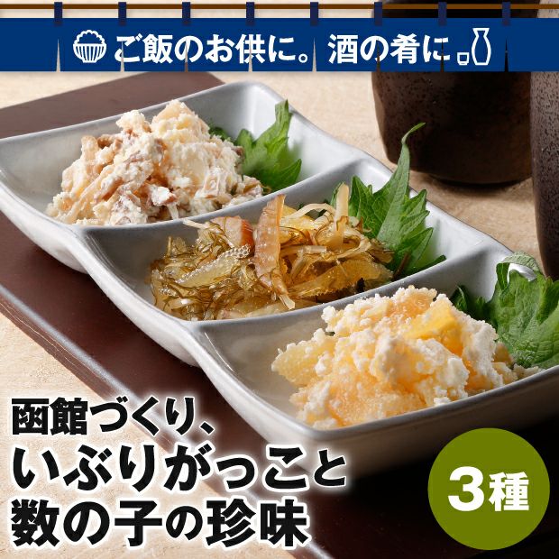 【セット内容】 ●いぶりがっこ松前漬 100g / ●燻りがっこチーズ 80g / ●数の子チーズ 80g