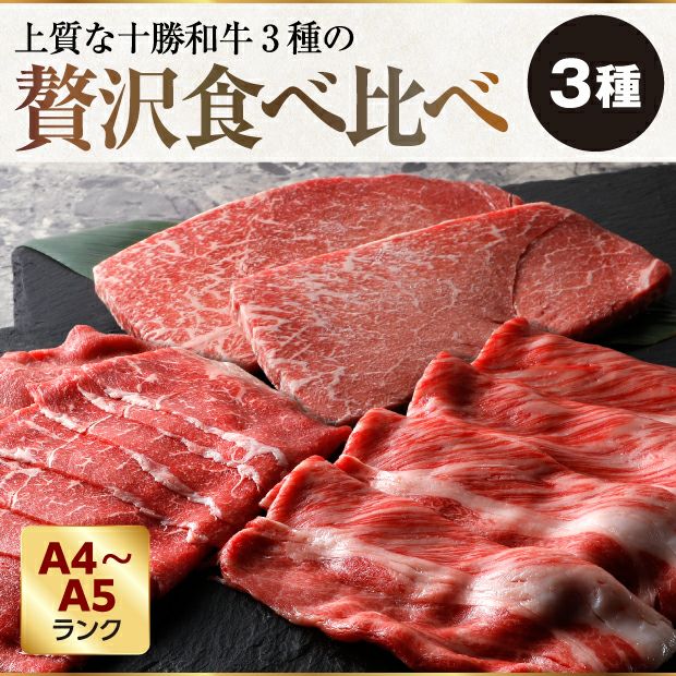 【セット内容】 ●十勝和牛肩ロースすき焼き用 270g ●十勝和牛ももすき焼き用 270g ●十勝和牛ももステーキ用 270g(135g×2)