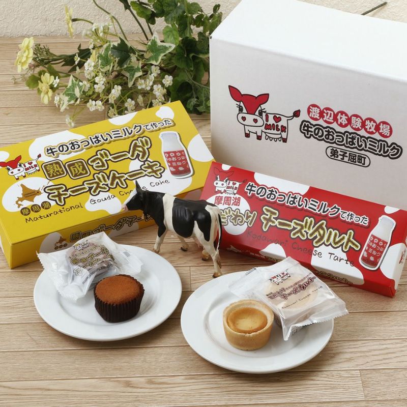 【セット】弟子屈町摩周草原でのびのびと放牧されて育ったストレスの少ない牛たちから搾った、「牛のおっぱいミルク」。そのミルクを使ったチーズタルトとチーズケーキをセットにしました。