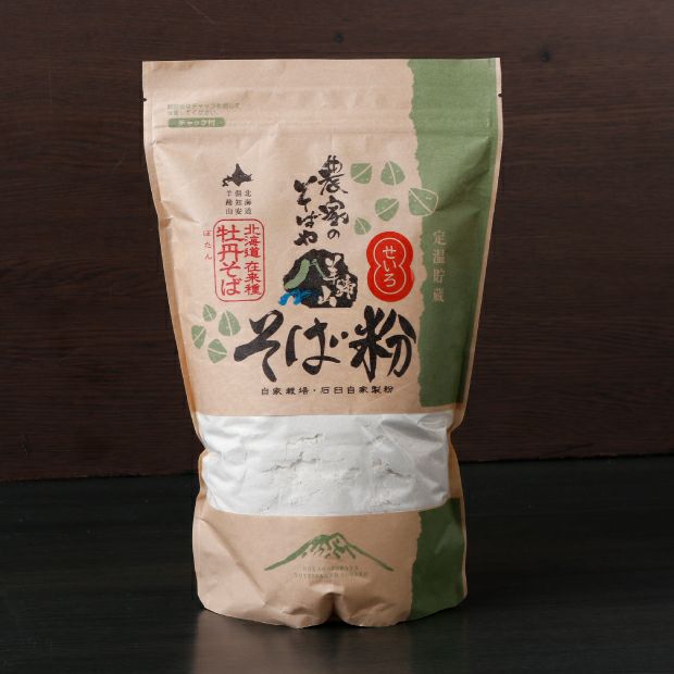 羊蹄山麓の素晴らしい環境が「農家のそばや羊蹄山」のそばを支えています。敷地内の畑で、先代が丹精こめて育てる自家栽培のぼたん種を使用。北海道の在来種であるぼたん種の特有の優しい甘さや風味を、皆さまに味わっていただきたいという思いから、栽培に時間と手間はかかりますがぼたん種にこだわり続けています。畑を耕し植え付けをし、花が咲いて収穫。定温で貯蔵し沢山の工程を経て製粉しそばを打ちます。畑からそばになるまですべてを知っていることが誇りです。