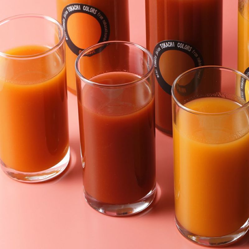パッと人の目を引き付ける黄・オレンジ・赤 3色のトマトジュースをお届けします。