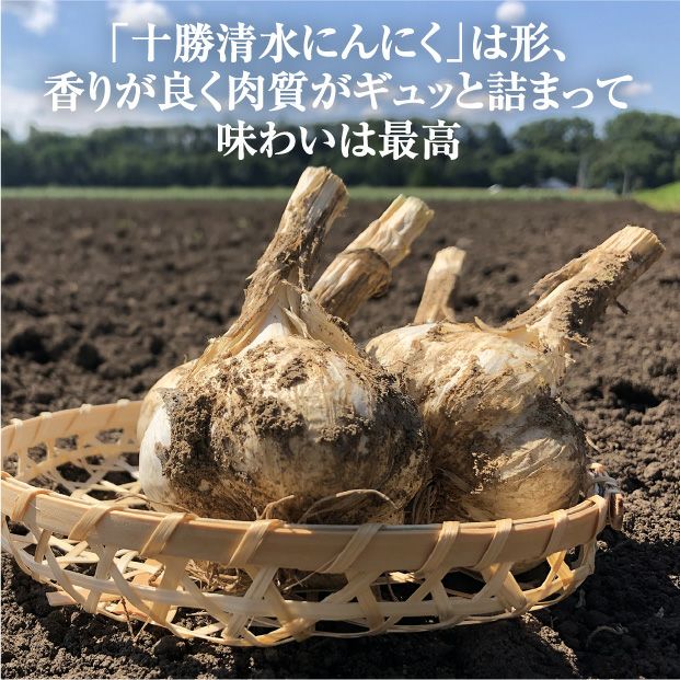 JA十勝清水町は、地域にあるバイオマス資源(乳牛糞と採卵鶏糞、天然木質チップ)を混合し、十分に発酵、腐熟化させた堆肥「しみず有機」として土にかえすことで、化学肥料の使用量を低減し、環境負荷の少ない持続可能性の高い農業を営んでいます。商品の原料として使用されている「十勝清水にんにく」は、徹底管理された土づくりを実行する土壌で育成されています。