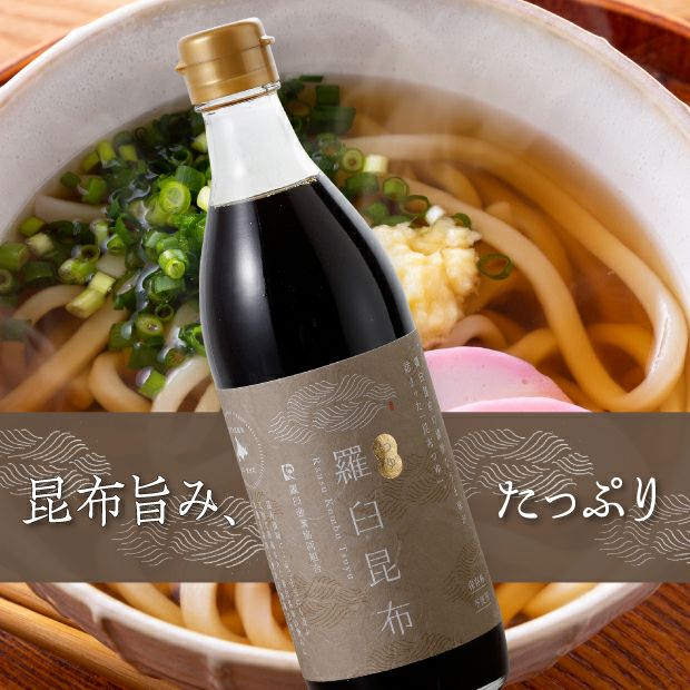 羅臼昆布の旨味を本醸造醤油に加えた、まろやかな味わい。めんつゆはもちろん、丼物や天つゆ、煮物などにも美味しくいただけます。