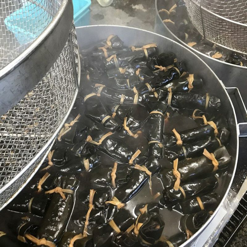昆布巻きを煮る際に使用する特製のタレは、開発当時から20年以上に渡って注ぎ足ししながら使い続けている、厚岸町産牡蠣の煮汁を使用した秘伝の特製タレ。具材にまでしっかりと味を染み込ませます。