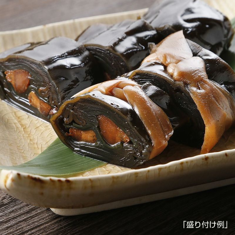 東北海道産の高級厚葉昆布1等を使用し北海道産のほたてを具材に巻いています。甘過ぎず、しょっぱ過ぎない、程よいバランスに味付けしつつ、肉厚でありつつも柔らかい食感に仕上げることにより、どなたでも食べやすい昆布巻きになっています。ほたてならではのまろやかな甘みも感じられ、昆布との相性も抜群。