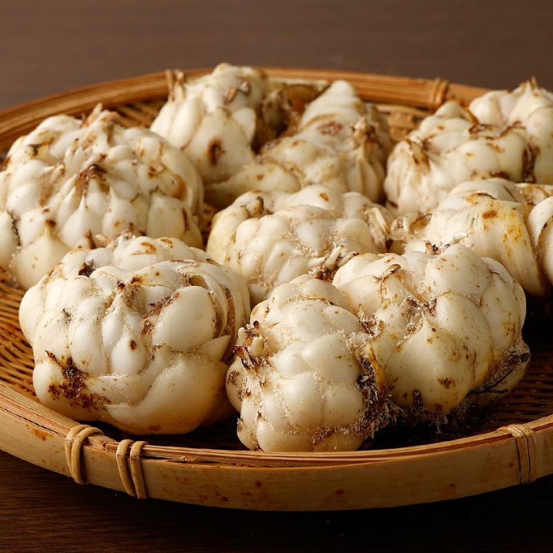 栄養価が高く、健康や美容によいことから京懐石やおせち料理、精進料理によく使われるユリ根。百合の球根を食用にしたものなので、大変手間(6年)がかかります。ホクホクとした食感と上品な甘味が特徴で、日本のゆり根の99%が北海道産で収穫されています。
