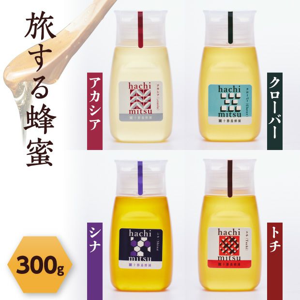 【セット内容】 各300g ●アカシア蜂蜜 / ●クローバー蜂蜜 / ●トチ蜂蜜 / ●シナ蜂蜜 ※はちみつは、1歳未満の乳児には与えないでください