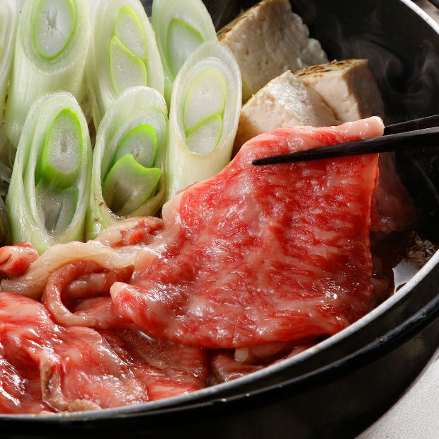 ①鍋を強火にかけ牛脂を溶かしながら全体に塗ります。 ②牛肉とネギを焼いてから割りした(タレ)を入れます。 ③残りの具材を入れ、肉の色が変わってすぐくらいに溶き卵につけながら召し上ってください。 ④煮汁が残ったら、うどんやお餅を入れて食べるのもおすすめです。煮込むのではなく、焼き付ける感覚でつくるとよりおいしく仕上がります。