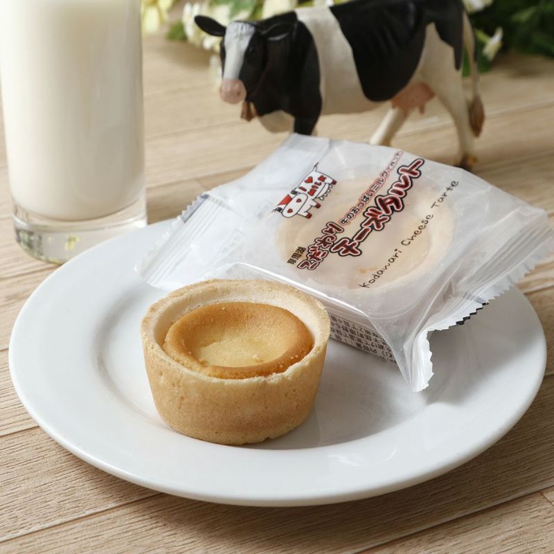 【牛のおっぱいミルクで作ったこだわりチーズタルト】牛のおっぱいミルクを使ったチーズタルトは人気商品。1つがちょうどいい大きさで、おやつにぴったり。チーズの濃厚な味が口の中に広がります。