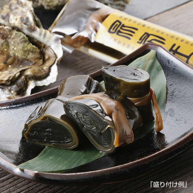 東北海道産の高級厚葉昆布1等を使用し、純粋に昆布そのものの深い味わいを堪能できる一品。甘過ぎず、しょっぱ過ぎない、程よいバランスに味付けしつつ、肉厚でありつつも柔らかい食感に仕上げることにより、どなたでも食べやすい昆布巻きになっています。タレに溶け込んだ牡蠣の旨味と磯の風味も感じられる、その名に相応しい昆布巻きです。