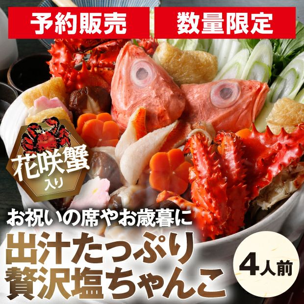 他の画像を見る 贅沢具材たっぷりのあぶり家の定番鍋「塩ちゃんこ」で年末年始をお祝いしませんか 釧路炉端 きんき祝い鍋セット(4人前) [釧路市]くし炉あぶり家 ¥ 15,980 税込 お気に入り 送料込み 冷凍 在庫切れ