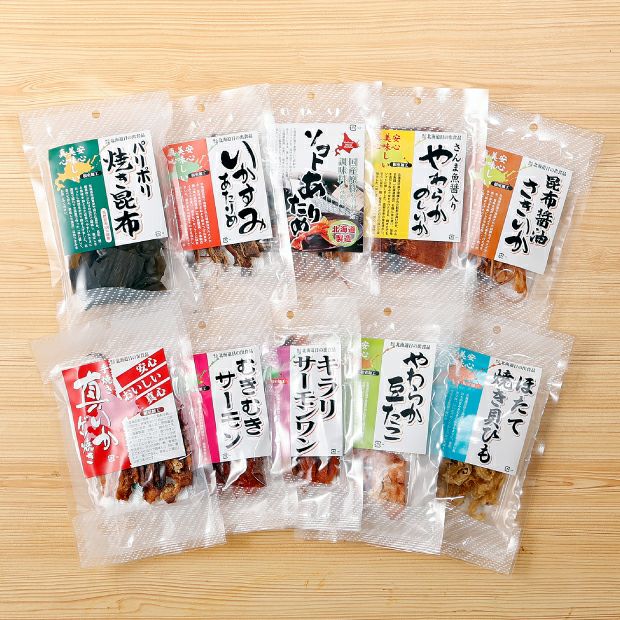 他の画像を見る 北海道産素材と出汁の旨味が後を引くおいしさ。迷って決められない方はこちらがおすすめ 北海道おつまみ 人気10Pセット [根室市]北海道日の出食品 ¥ 5,140 税込 お気に入り 送料込み 常温