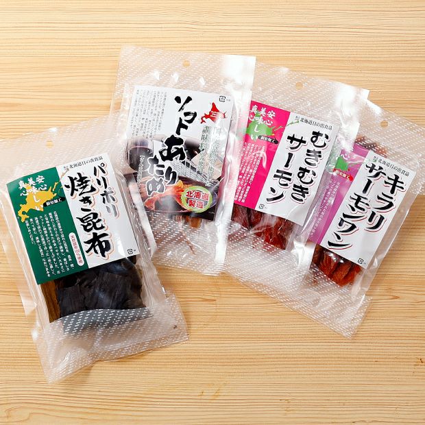 他の画像を見る 北海道産素材と出汁の旨味が後を引くおいしさ。社長も食べる手が止まらない! 社長おすすめ!北海道おつまみ4Pセット [根室市]北海道日の出食品 ¥ 2,750 税込 お気に入り 送料込み 常温
